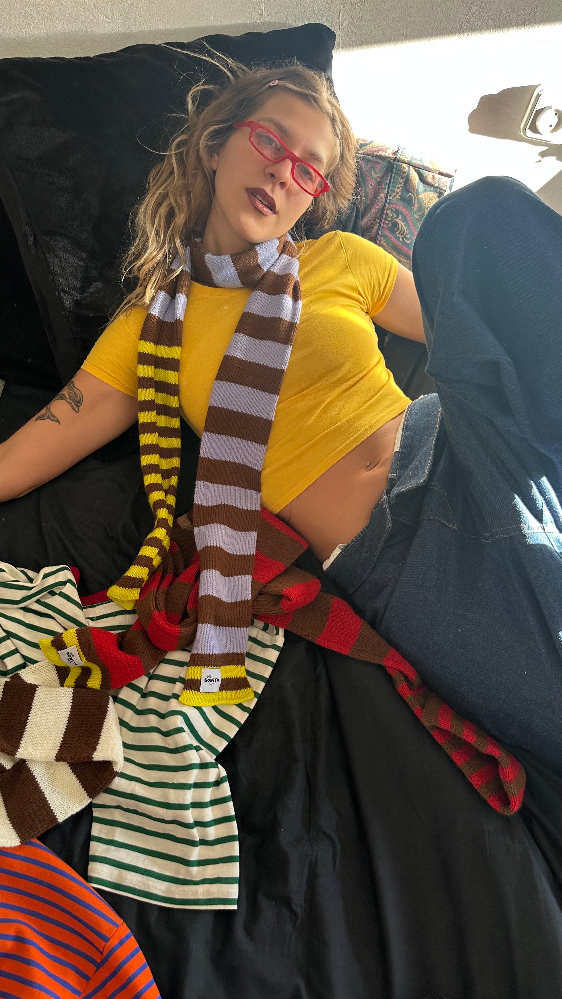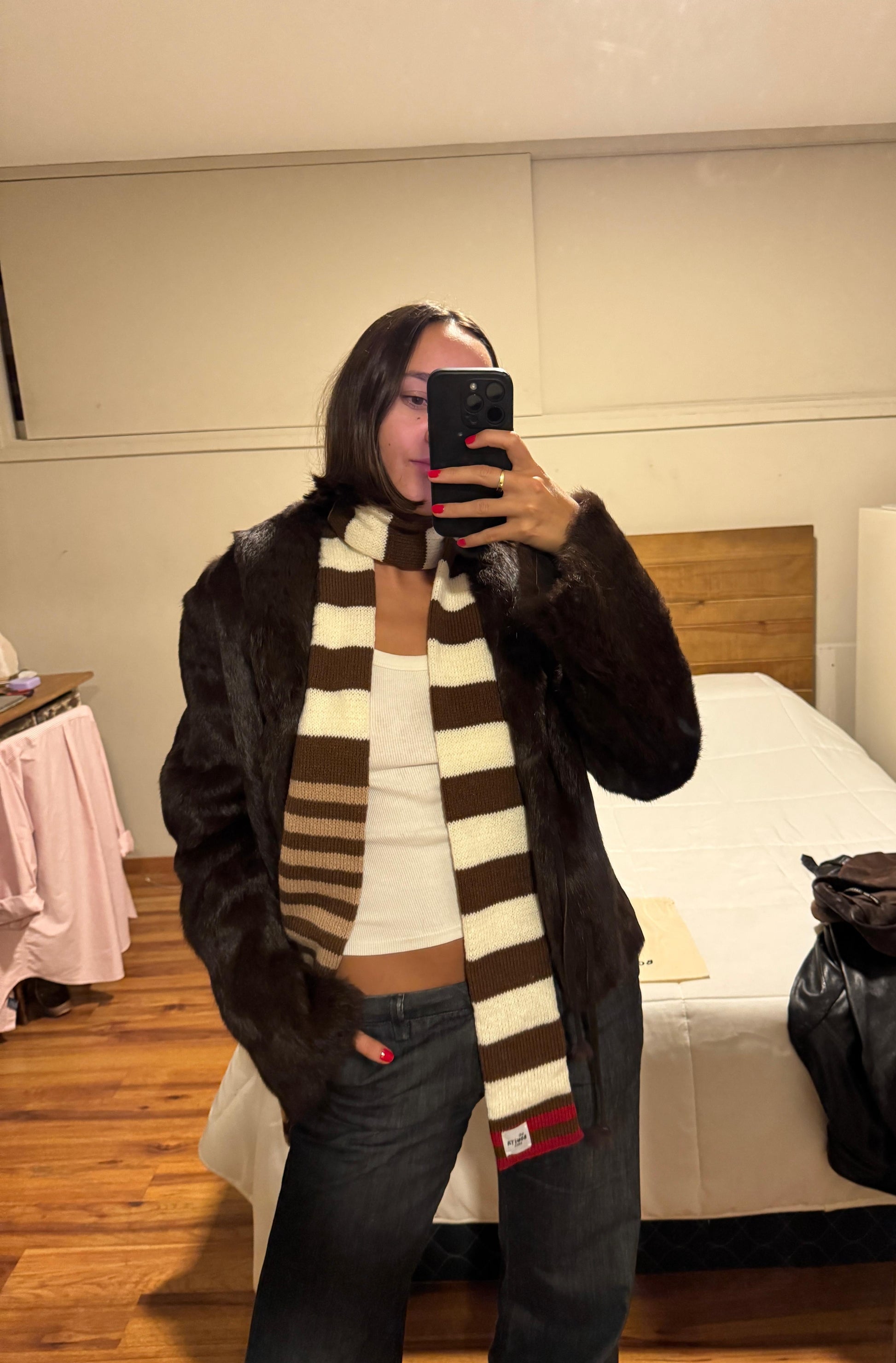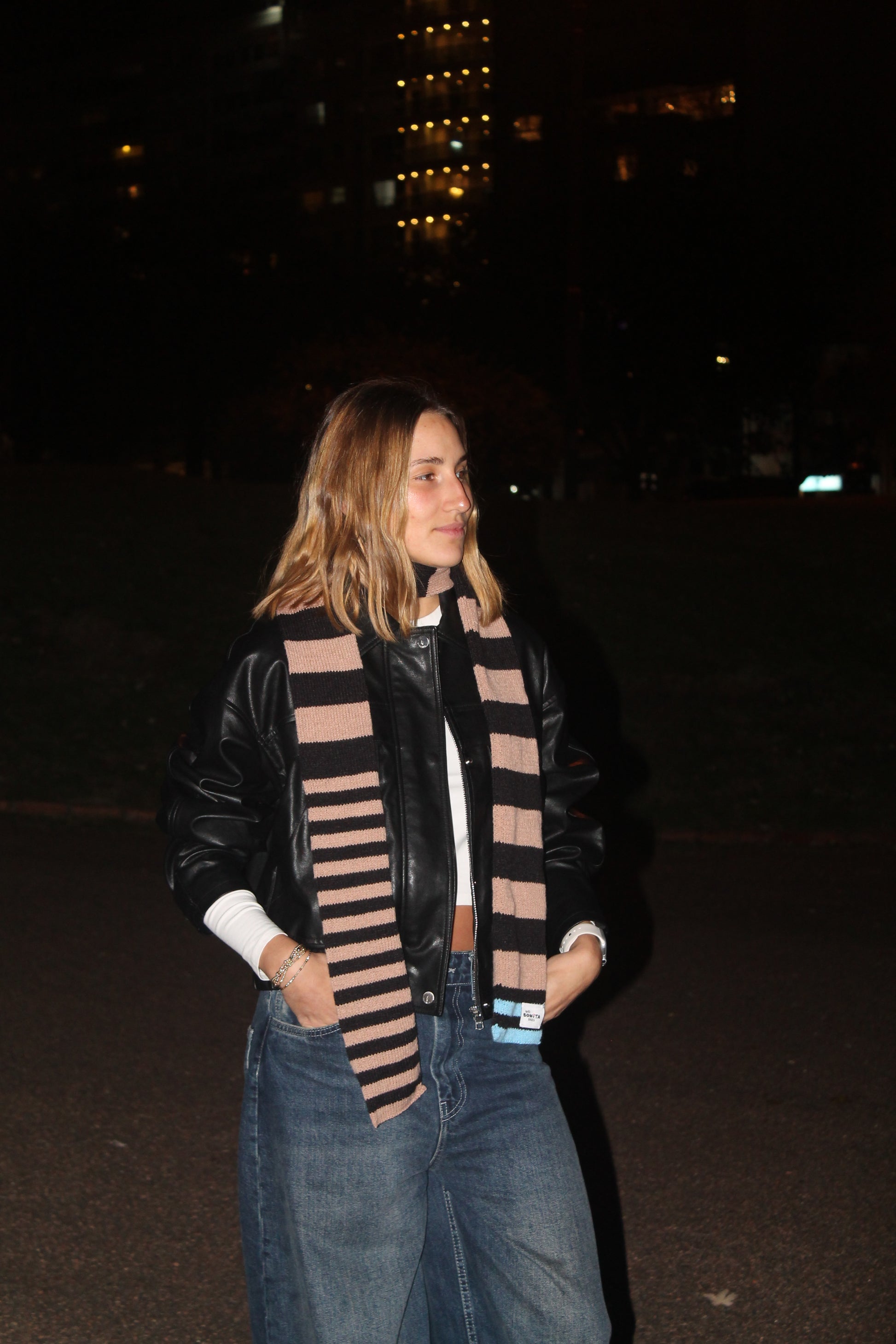 Bufanda tejida, ideal para abrazarte los días de frío y elevar los looks con calidez.
